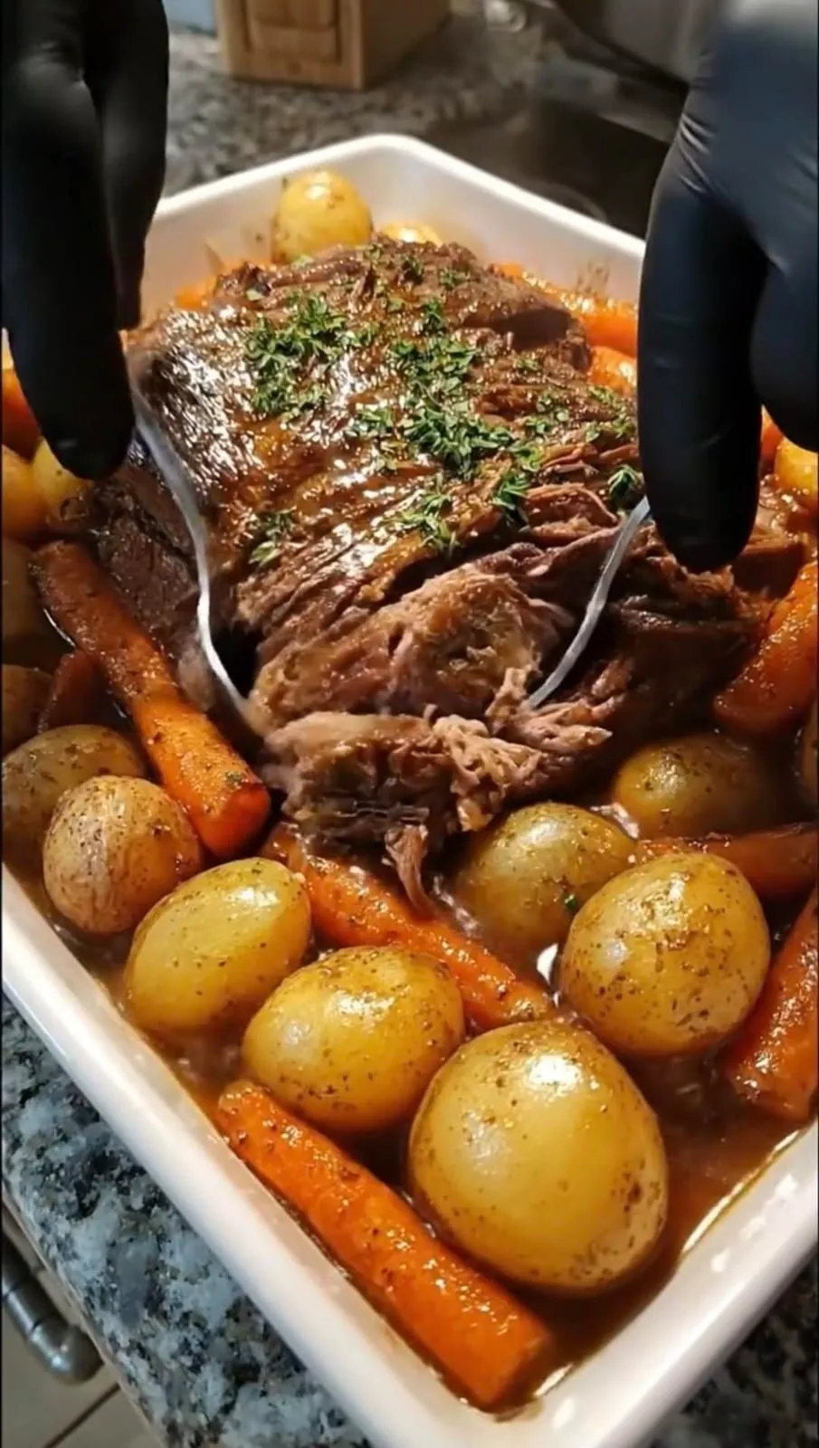 時間をかけてじっくり煮込むことで、フォークでほぐれるほど柔らかい絶品ローストになります。失敗なしの簡単レシピです 🍽️ 🧾 材料(4〜6人分) 👩🍳 作り方(ステップ・バイ・ステップ)